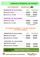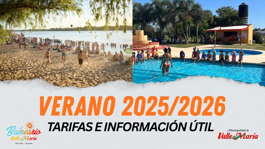 La Municipalidad de Valle María informa a la comunidad y a los visitantes que, a partir del Viernes 5/12, entrarán en vigencia las nuevas tarifas correspondientes al Complejo Balneario Camping y al Complejo Municipal de Piletas.