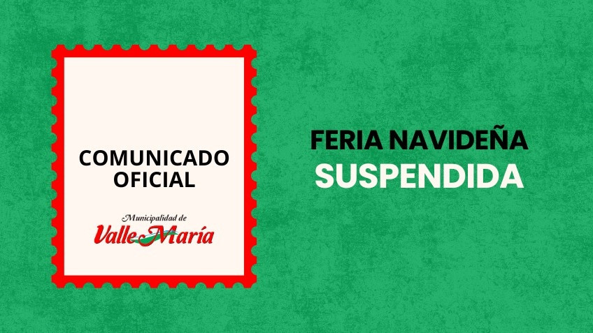 La Municipalidad de Valle María informa que la FERIA NAVIDEÑA, prevista para el día 21 de diciembre de 2025, ha sido suspendida.