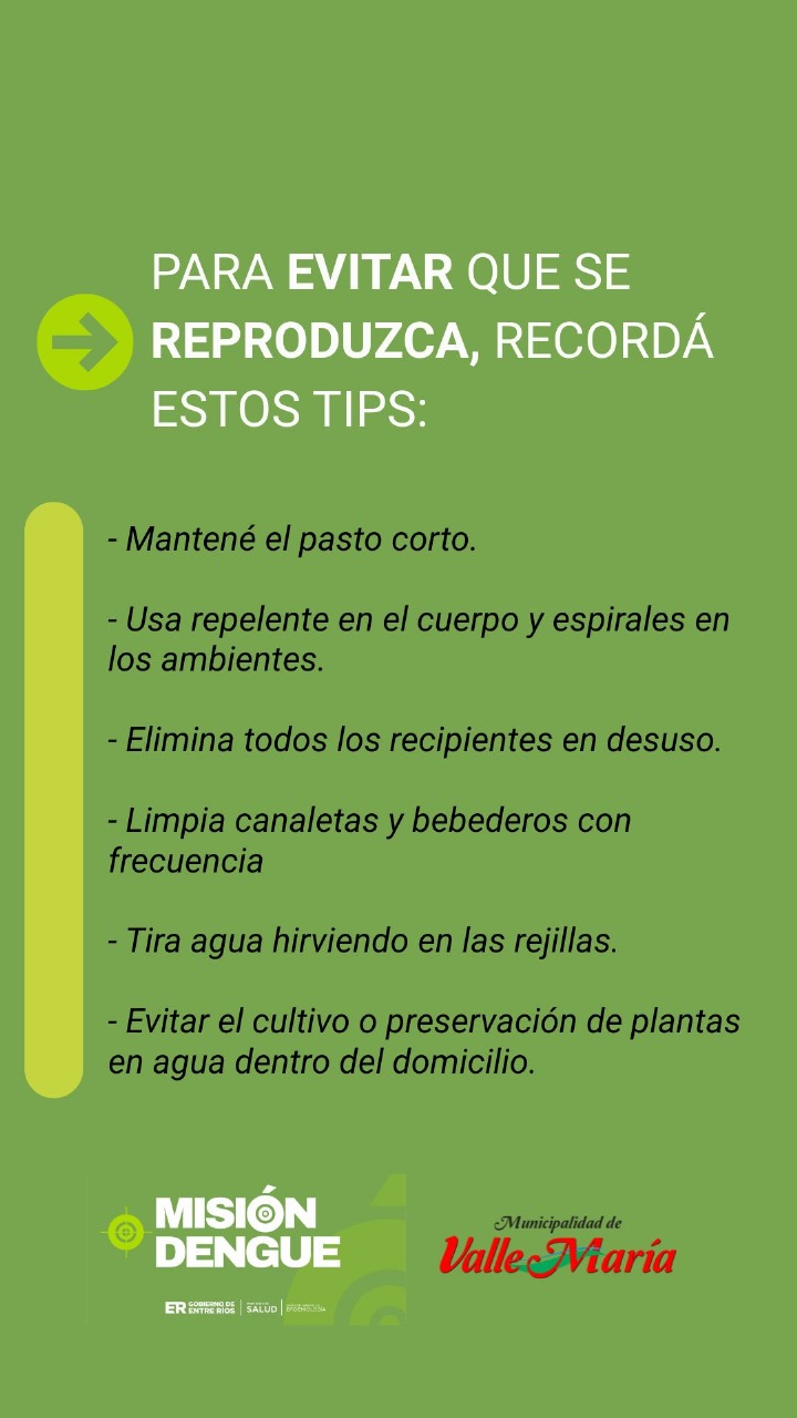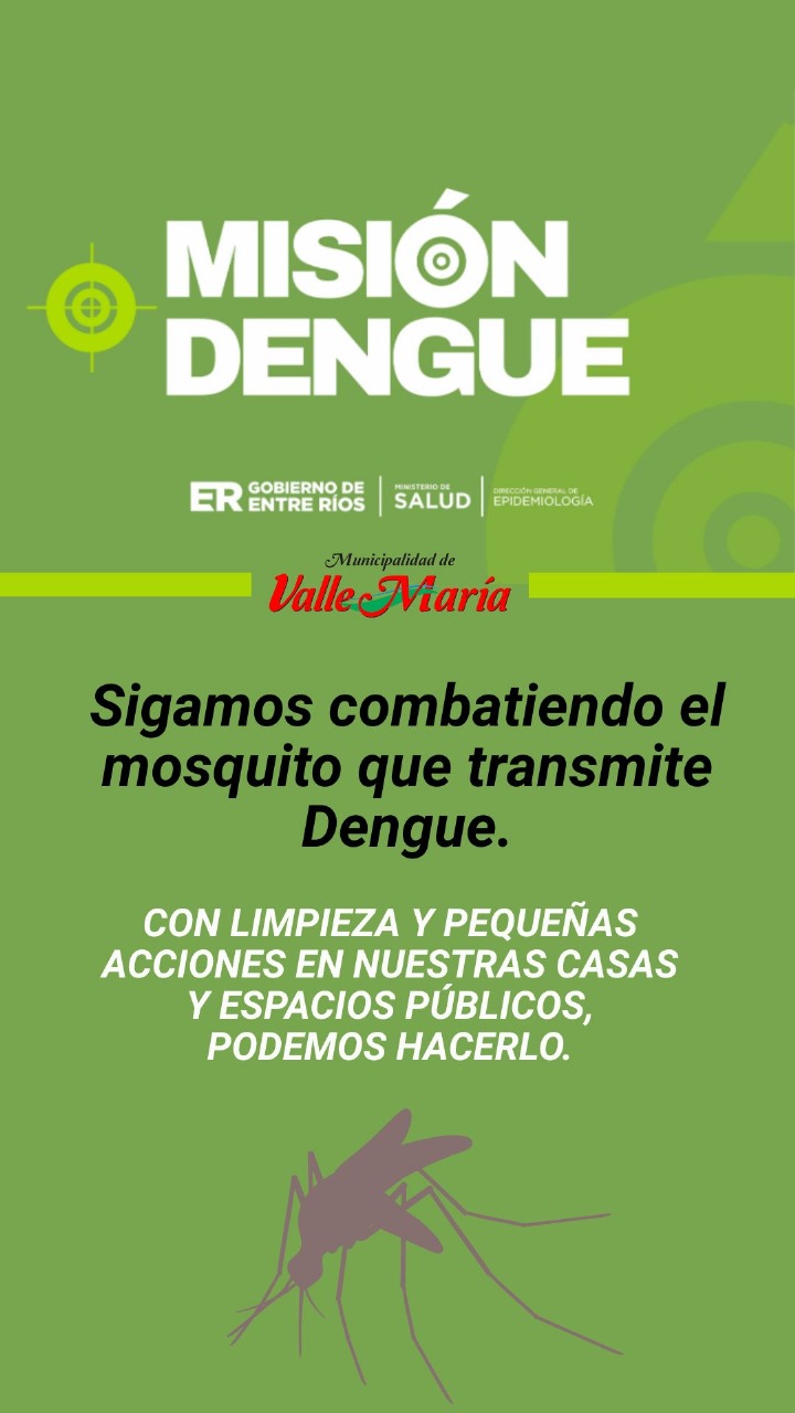 La Municipalidad de Valle María recuerda a la población la importancia de fortalecer las medidas de prevención del dengue, una enfermedad viral que continúa representando un desafío sanitario en muchas regiones del país.