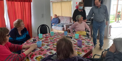 Día del abuelo - El intendente y su equipo visitaron el Hogar y llevaron un presente a los abuelos y abuelas