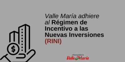 VALLE MARÍA ADHIERE AL RÉGIMEN DE INCENTIVO A LAS NUEVAS INVERSIONES (RINI)